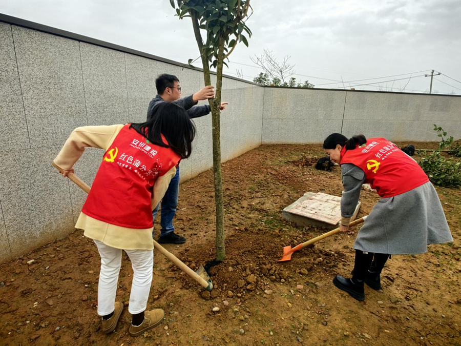 植樹活動現(xiàn)場氣氛熱烈,黨員們分組協(xié)作,力求每棵樹苗都扎根牢固。黨員們還為樹苗掛上心愿牌,為活動留下溫情紀(jì)念。